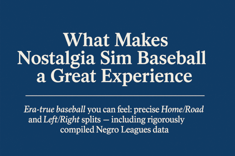 Come play baseball with us! We combine historically accurate simulation with a passion for the game’s storied past. Playing a baseball sim should be a learning experience — and it is here. The latest version adds deeper Negro Leagues coverage, with splits and park factors across eras. If you love making smart managerial decisions based on detailed stats, this is your game.